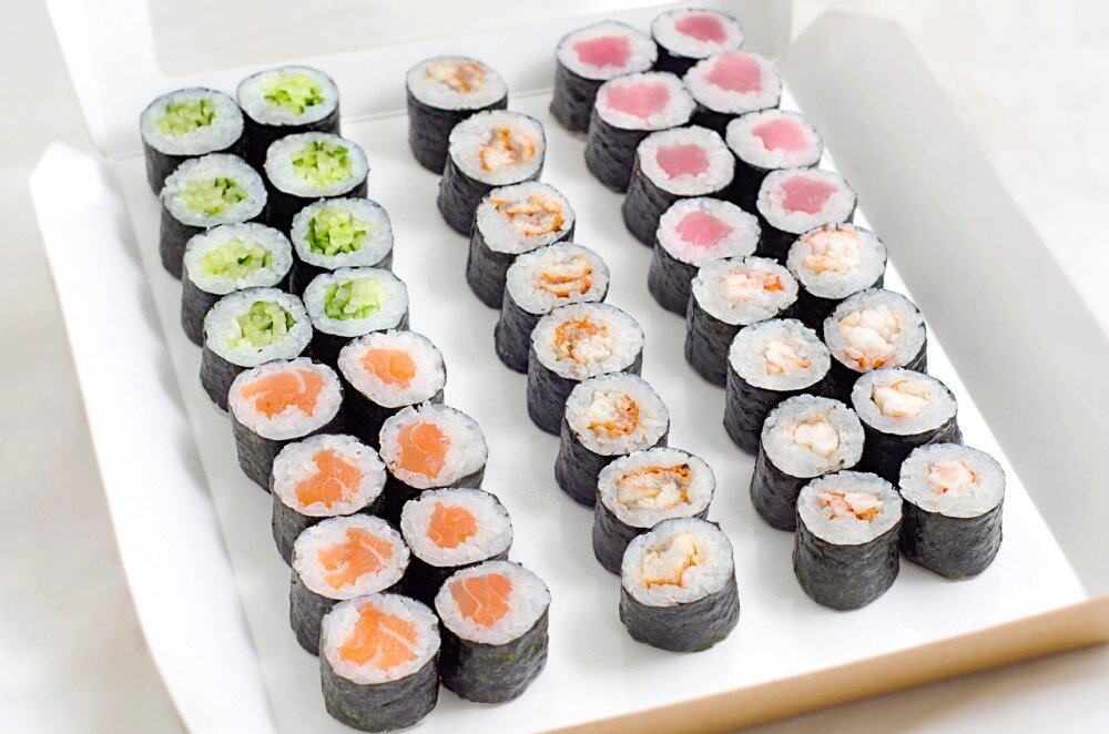 Выгода 15%. Классические роллы - с креветкой, с огурцом, с тунцом, с угрём, с лососем.
