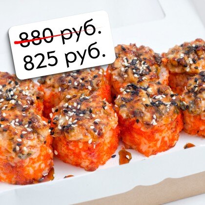 Угорь, огурец, сливочный сыр, сырный соус, нори, рис, соус унаги, кунжут