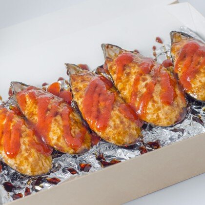 Запечённые мидии под соусом хот-спайси