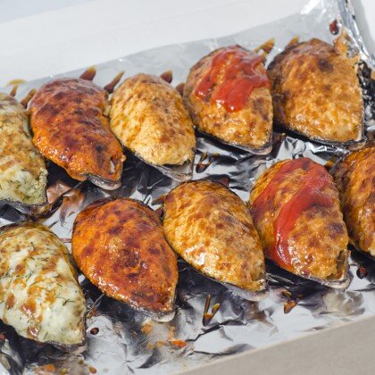 Мидии, запечённые под спайси соусом