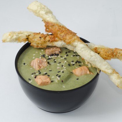 Крем-суп из шпината с лососем на кокосовом молоке